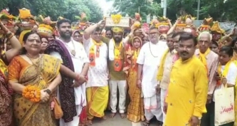 गाजे-बाजे के साथ निकली शिव महापुराण कथा की भव्य कलश यात्रा