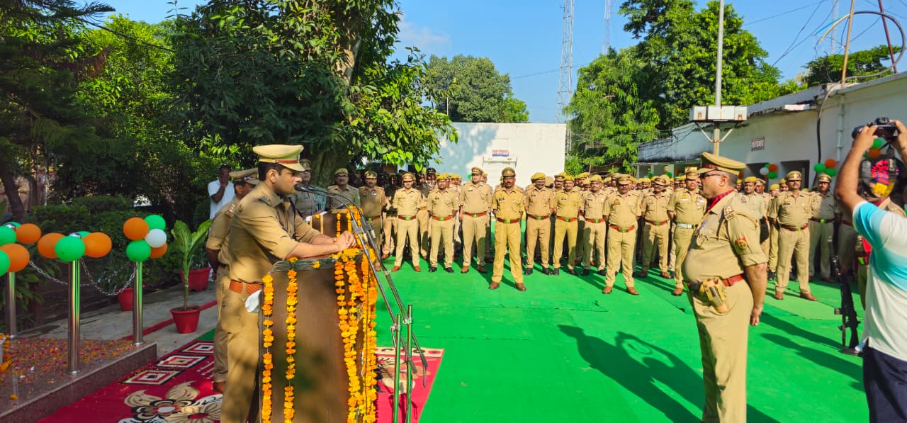 रायबरेली। 15 अगस्त 2025 को 79वें स्वतंत्रता दिवस के पावन अवसर पर रिजर्व पुलिस लाइन, रायबरेली में भव्य ध्वजारोहण समारोह का आयोजन किया गया। कार्यक्रम का शुभारंभ पुलिस अधीक्षक रायबरेली डॉ. यशवीर सिंह द्वारा राष्ट्रध्वज फहराकर किया गया तत्पश्चात राष्ट्रीय ध्वज को सलामी दी गयी। कार्यक्रम के दौरान पुलिस अधीक्षक ने स्वतंत्रता संग्राम में अपने प्राणों की आहुति देने वाले वीर शहीदों को श्रद्धांजलि अर्पित करते हुए उनके बलिदान को स्मरण किया तथा समस्त पुलिसकर्मियों को देशभक्ति, अनुशासन एवं कर्तव्यनिष्ठा के साथ कार्य करने का संकल्प दिलाया। इसके साथ ही पुलिस कर्मियों को प्रशस्ति पत्र देकर सम्मानित किया।